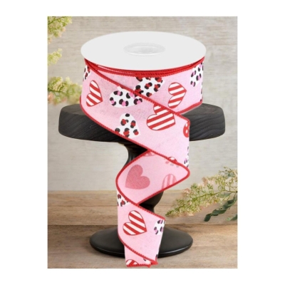 1.5" Leopard Hearts Ribbon: Pink (10 Yard)